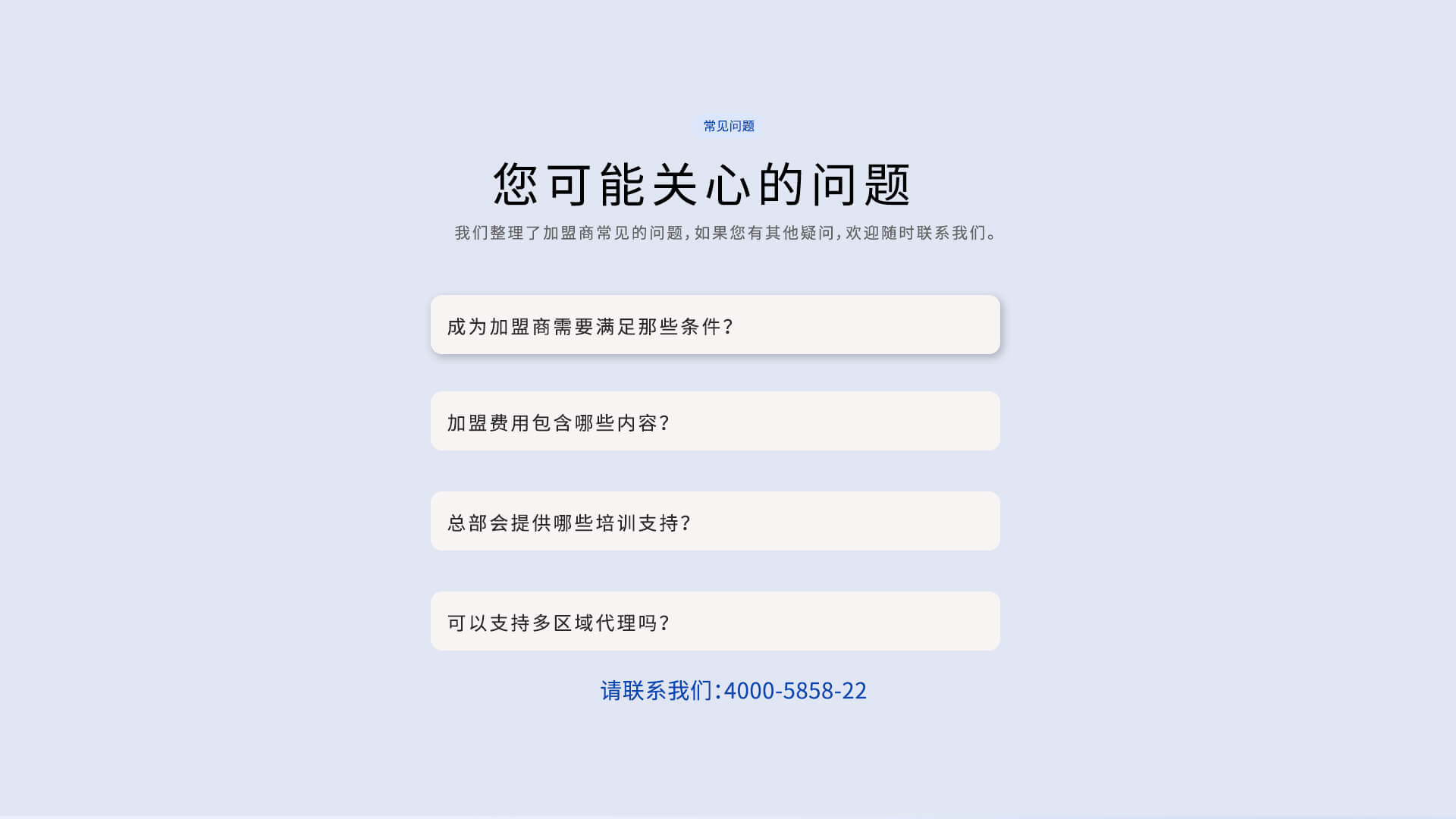 我们整理了加盟商常见的问题,如果您有其他疑问,欢迎随时联系我们。